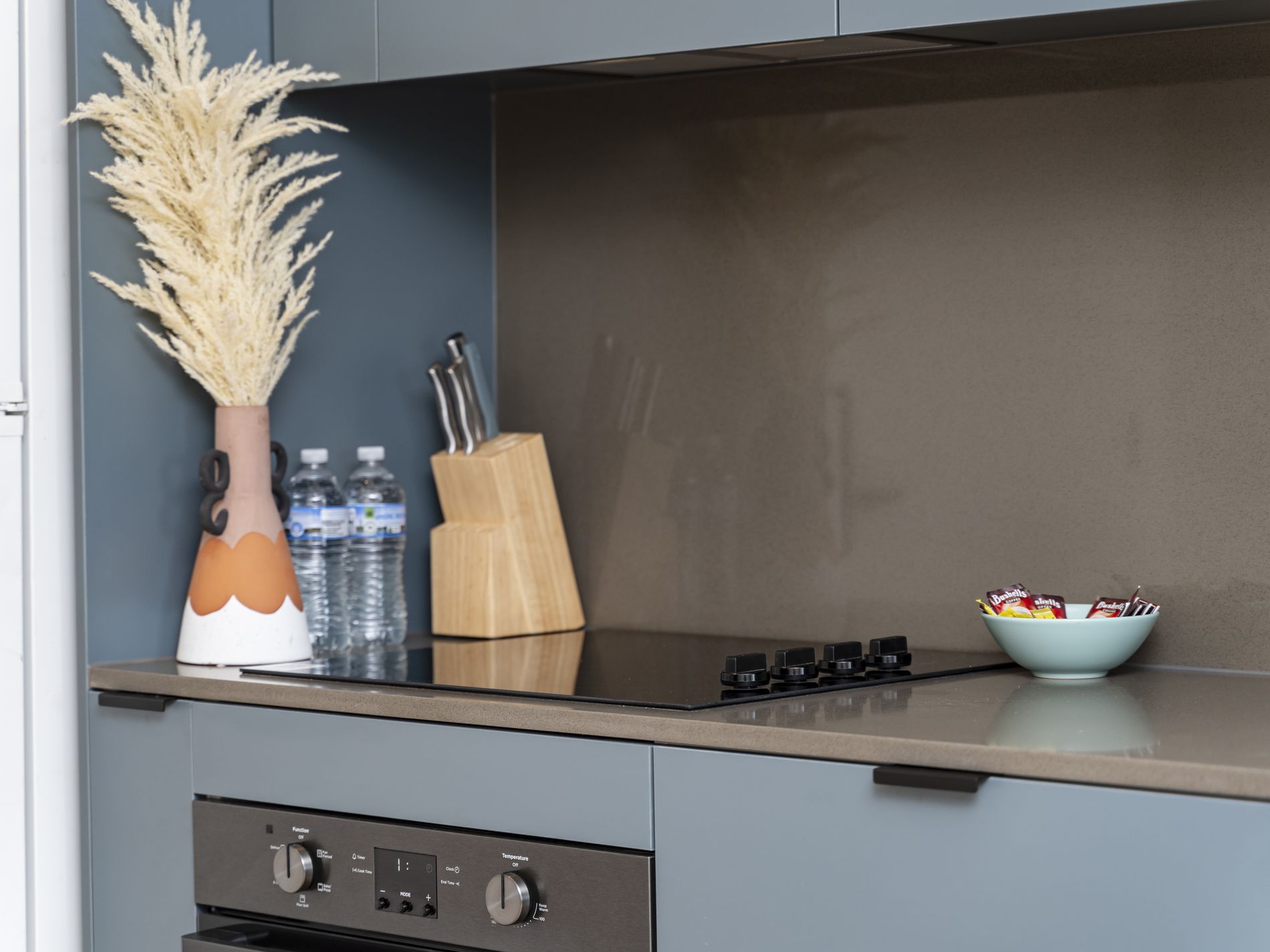 - Designer kitchen with stone benchtops & externally vented rangehood