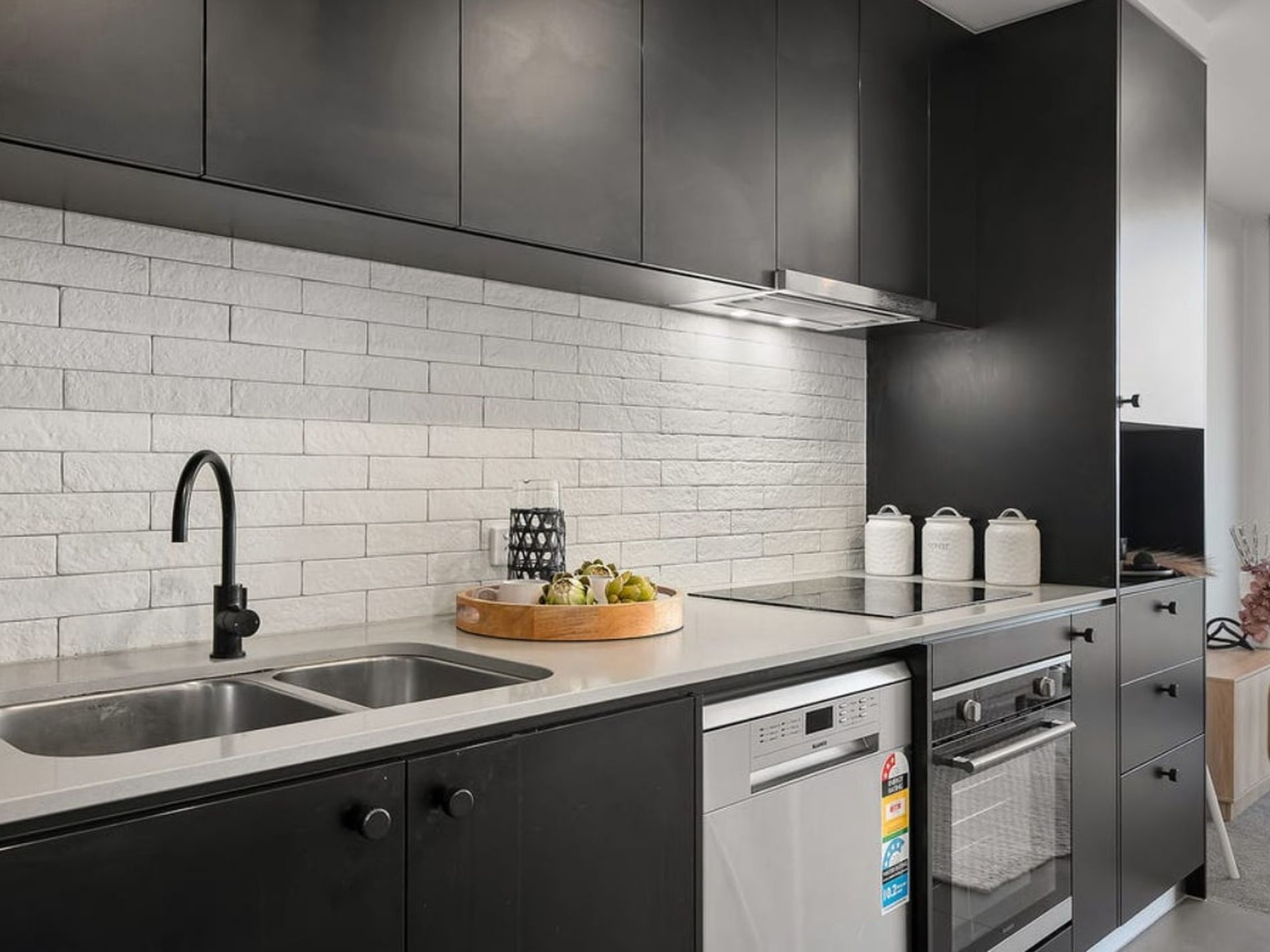 Modern kitchen with stone benchtops, induction cooktop, and quality appliances